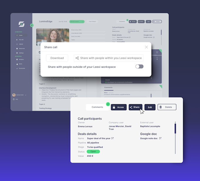 Only authorized individuals within your organization can access the notes generated by Leexi. You can also set up permissions and roles within your company.