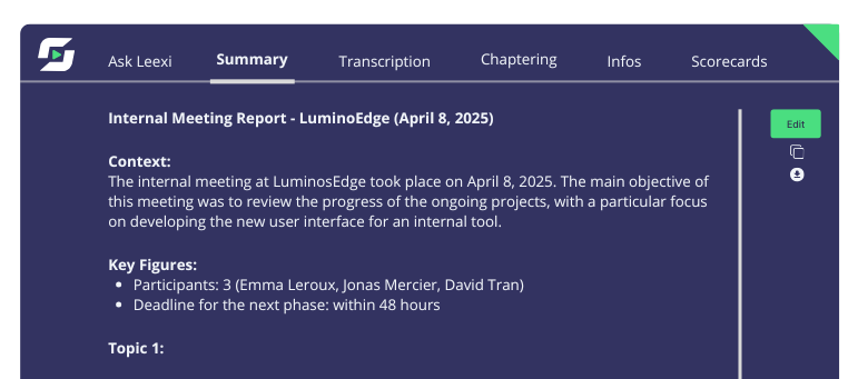 Leexi is designed to unlock your potential, allowing you to stop taking notes and focus on interaction during meetings while generating accurate summaries.