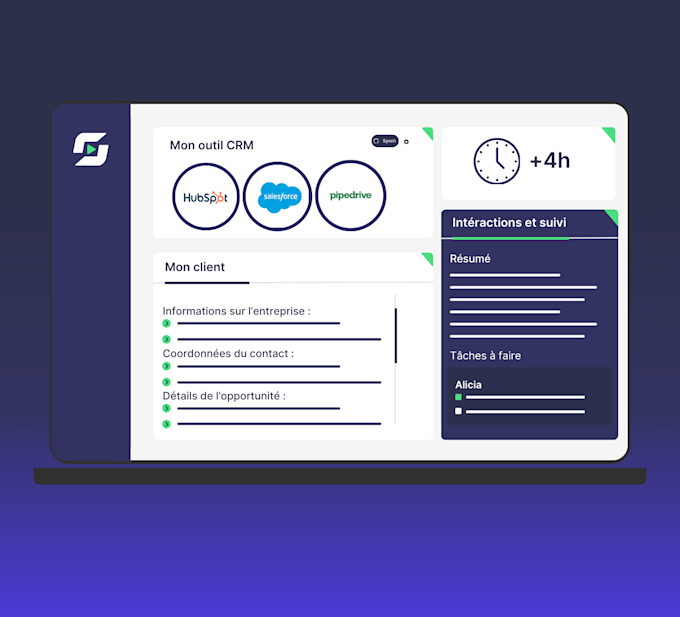 Leexi est compatible avec tous vos outils de visioconférence, VOIP, productivité et de CRM. Voici quelques exemples : Zoom, Meet, Teams, Gmail, Notion, Slack, Aircall, Ringover, 3CX, Pipedrive, Hubspot, Salesforce, Odoo etc.